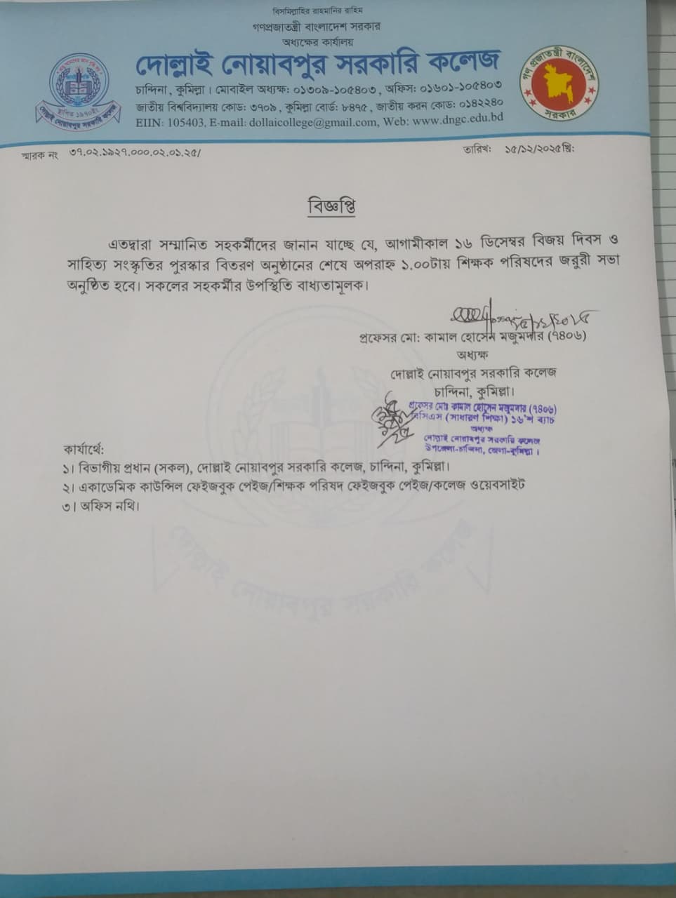 N_2025_12_30- সাবেক প্রধানমন্ত্রী ও বিএনপির চেয়ারপারসন দেশনেত্রী বেগম খালেদা জিয়ার মৃত্যুতে দোল্লাই নোয়াবপুর সরকারি কলেজ পরিবারের শোকবার্তা |