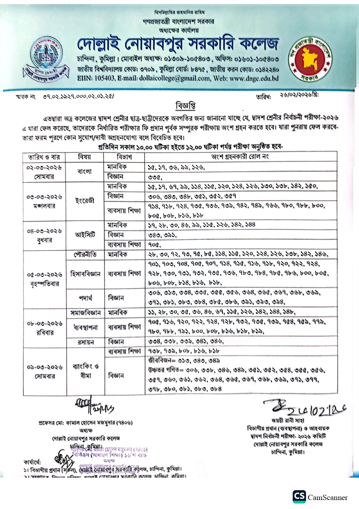 একাদশ অর্ধ-বার্ষিক পরীক্ষা-2026 এর রুটিন (সংশোধিত) |