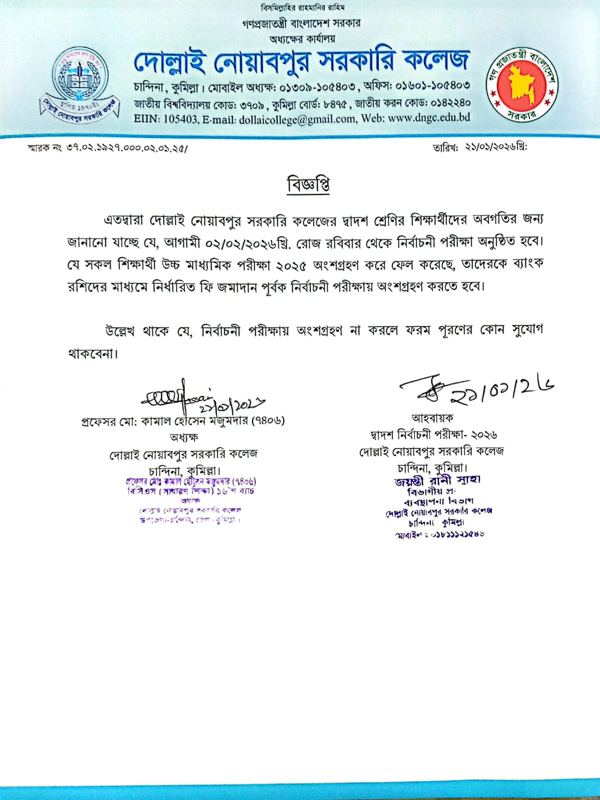 - অনিয়মিত দ্বাদশ শ্রেণির নির্বাচনী পরীক্ষা-২০২৬